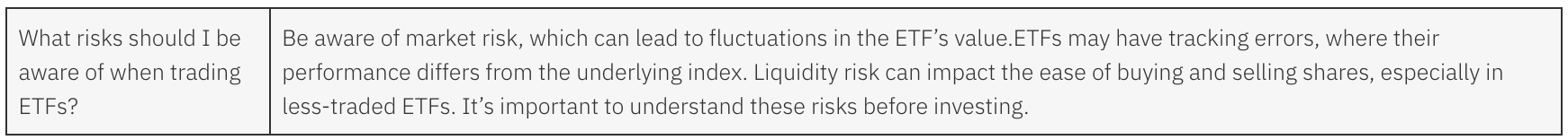 While ETFs offer many benefits, there are a few things to keep in mind: